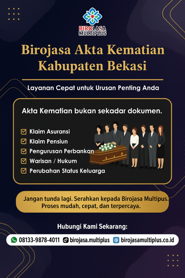 Akta Kematian bukan sekedar dokumen, sebagai biro jasa kami membantu pengurusan Akta Kematian wilayah Kabupaten Bekasi terpercaya,